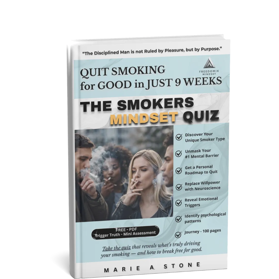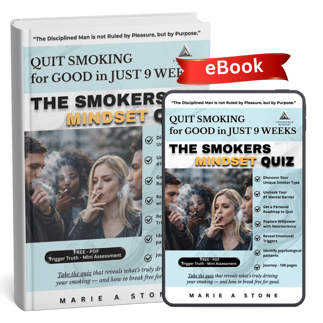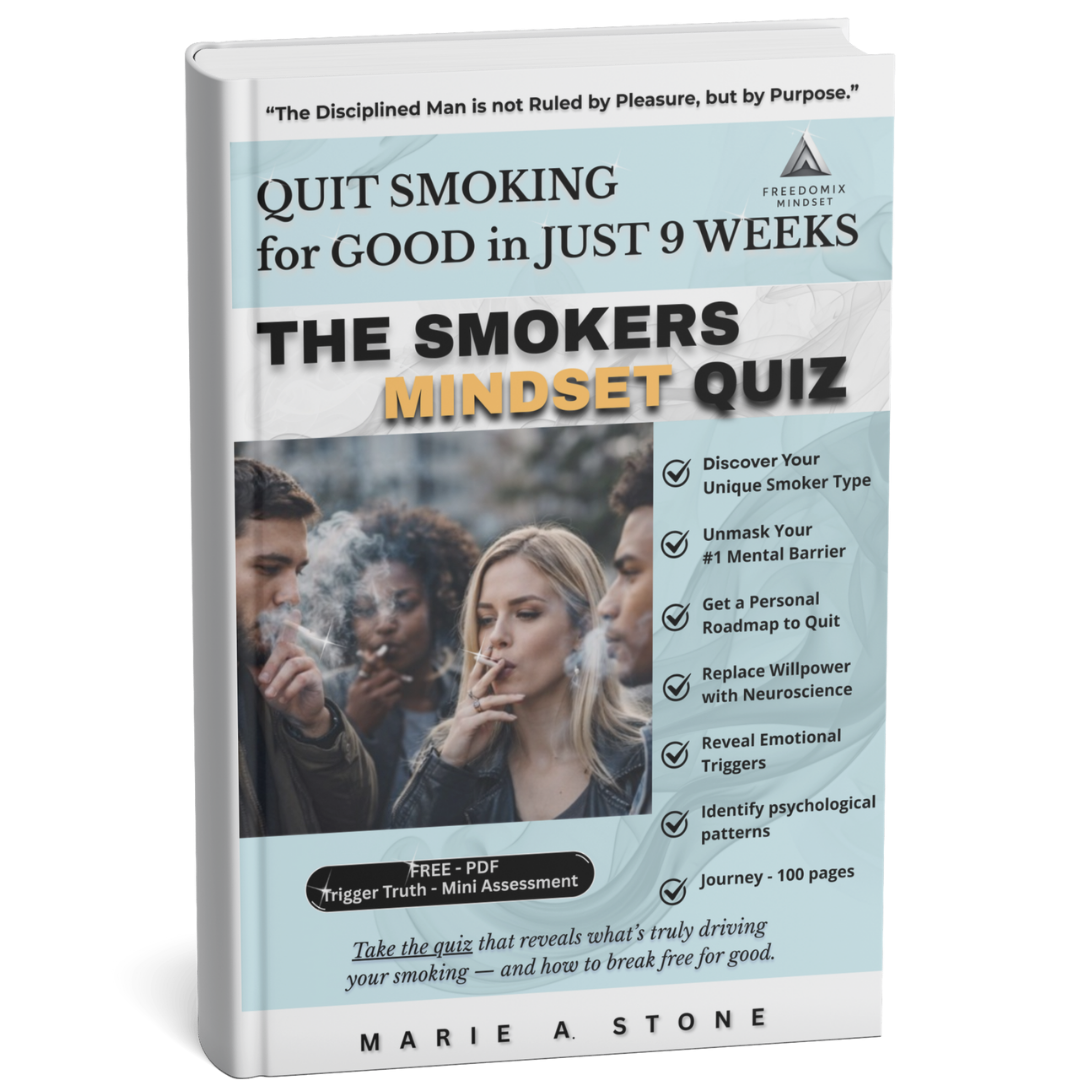 This e-book dismantles the myth that smoking is a willpower failure and replaces it with a psychology-first understanding of why the habit persists. You will identify your dominant smoker mindset and uncover the specific mental drivers keeping the behavior in place. Through the Smoker’s Mindset Quiz, confusion gives way to clarity and responsibility replaces self-blame. This book holds you accountable to understanding your behavior before attempting to change it. When insight becomes discipline, lasting change becomes possible.