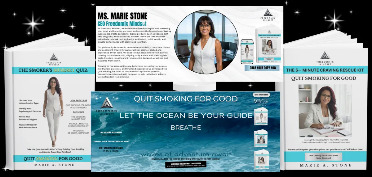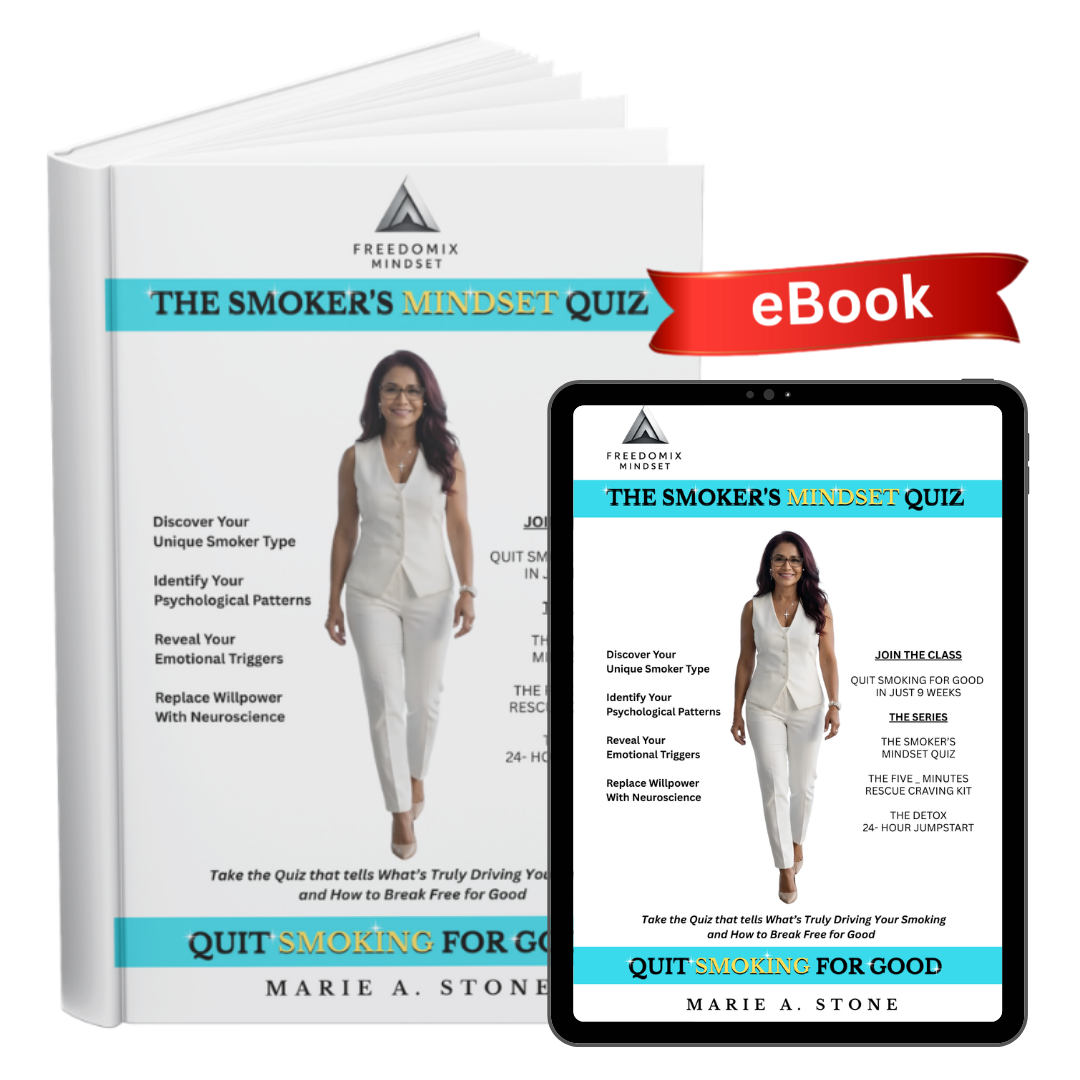 Inside, you’ll identify your Smoker Mindset Type and see how your triggers, routines, and responses that keep the habit loop running. Through the Smoker’s Mindset Quiz, confusion turns into clarity, and self-blame is replaced with understanding.